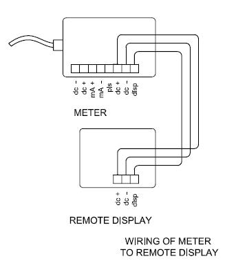 3、下圖顯示了儀表和求和遠(yuǎn)程顯示器之間的接線,如果互連電纜為22號(hào)或更大并且不超過(guò)60英尺,則可以在儀表或顯示器處連接電源。否則,它必須在儀表。