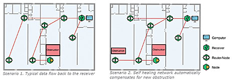 這些無(wú)線數(shù)據(jù)記錄節(jié)點(diǎn)是電池供電的裝置,將記錄的數(shù)據(jù)傳輸回用戶指定的時(shí)間間隔的中央接收器。他們克服了傳統(tǒng)的無(wú)線日志記錄系統(tǒng)的一個(gè)主要問題,在每個(gè)節(jié)點(diǎn)不必在直接與接收器的通信。每個(gè)節(jié)點(diǎn)可以設(shè)置在雙目的模式下,通過連接到交流電源,作為一個(gè)數(shù)據(jù)記錄節(jié)點(diǎn),以及作為一個(gè)路由器從其他節(jié)點(diǎn)上傳遞的數(shù)據(jù)。通過路由器和數(shù)據(jù)日志節(jié)點(diǎn)的組合,系統(tǒng)形成一個(gè)自愈網(wǎng)絡(luò),以確保數(shù)據(jù)到達(dá)接收器,通過一個(gè)備用路徑,應(yīng)現(xiàn)有的路徑失敗或被阻礙。