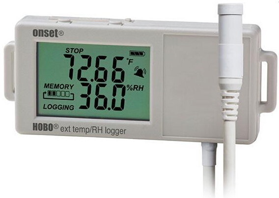 HOBO UX100-023溫濕度記錄儀外接1個溫濕度探頭,配有液晶屏能夠實時顯示測試當前的環境溫度、相對濕度、電量、內存使用量和報警開關狀態等信息,方便您直觀了解記錄儀的工作狀態。該儀器最適合測量室內溫濕度,既可以用于住宅、辦公室的室內溫濕度測量,也可以用于儲藏室、倉庫、服務器機房等建筑物室內的環境溫室度跟蹤,還可用于博物館的環境濕度測量。其外接式溫濕度探頭配有1.83m線纜,可以將探頭插入狹窄區域或箱體內部來測量器內部的溫濕度情況。